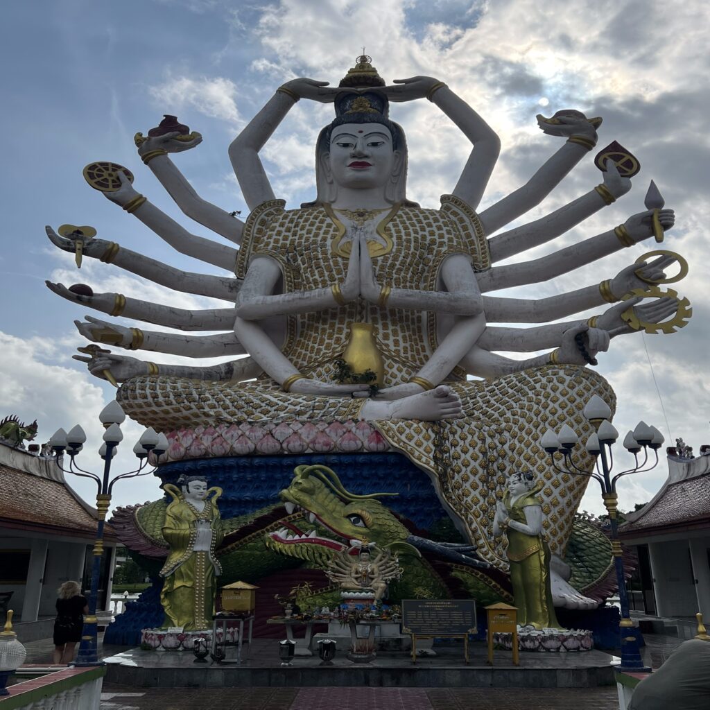 Wat Plai Laem ist ein kleines Kunstwerk für sich: bunt, verspielt und reich verziert. Die 18-armige Statue der Göttin Guanyin war eines unserer Fotohighlights – ein Ort, der Spiritualität mit Farbenfreude vereint.
