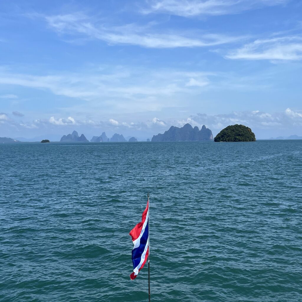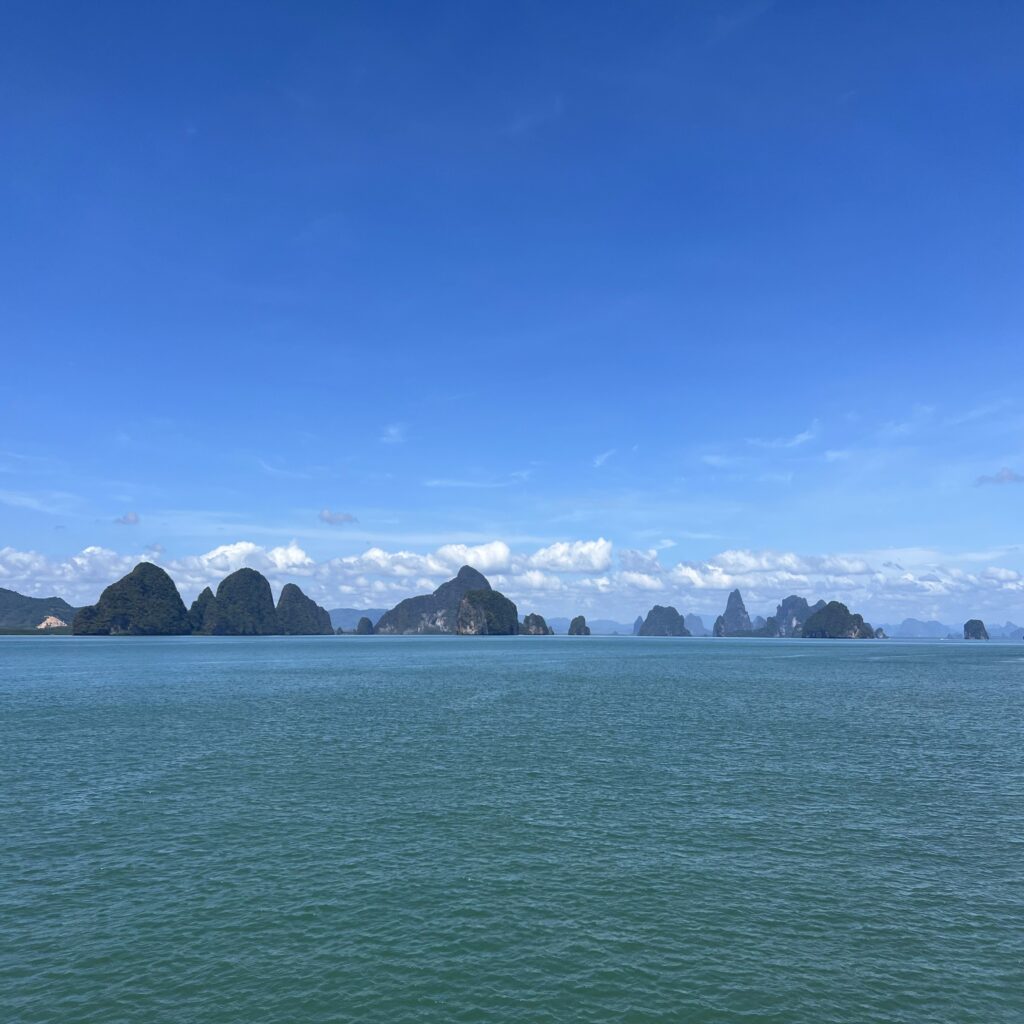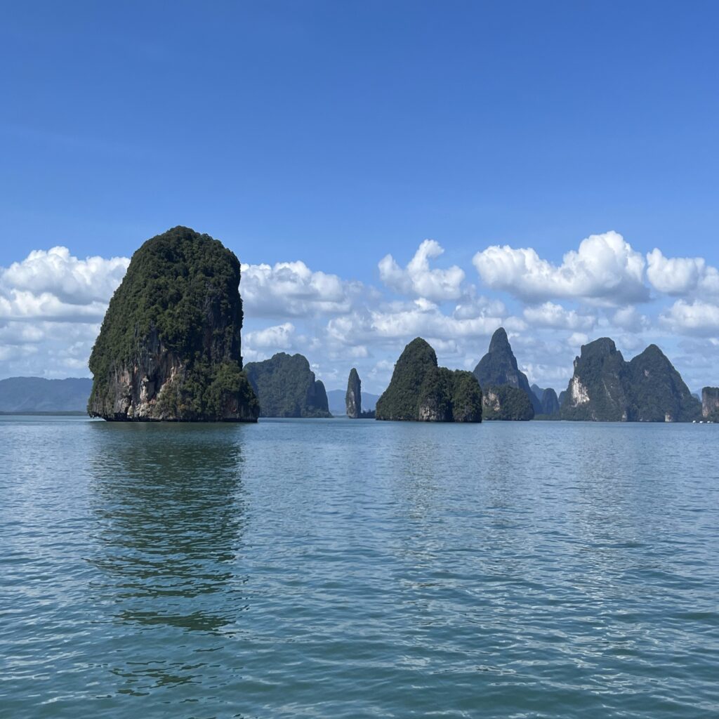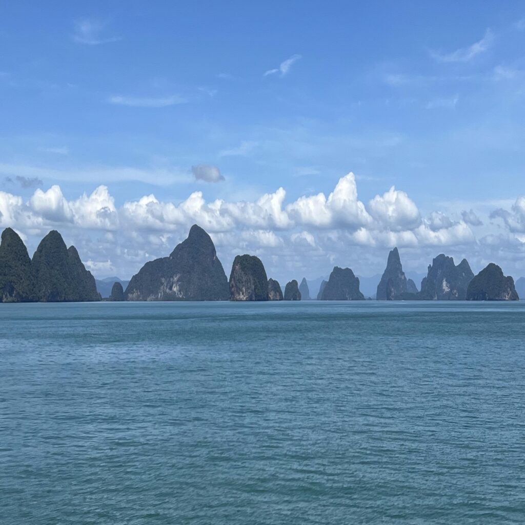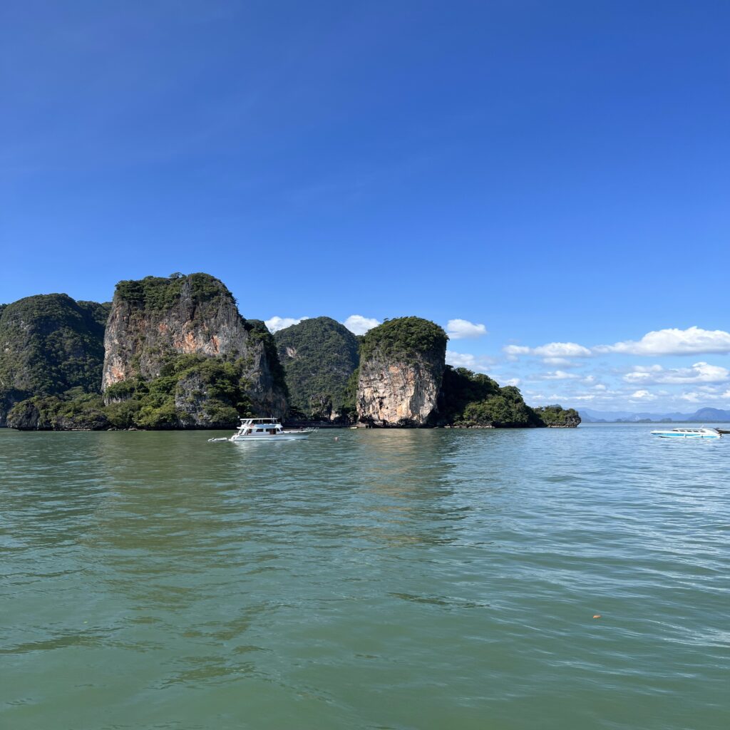 Unsere Reise nach Phang Nga begann in Patong. Von dort aus ging es per Bus und Boot in Richtung Bucht. Schon während der Fahrt bot sich ein faszinierendes Panorama aus aufragenden Felsinseln und tiefblauem Himmel.