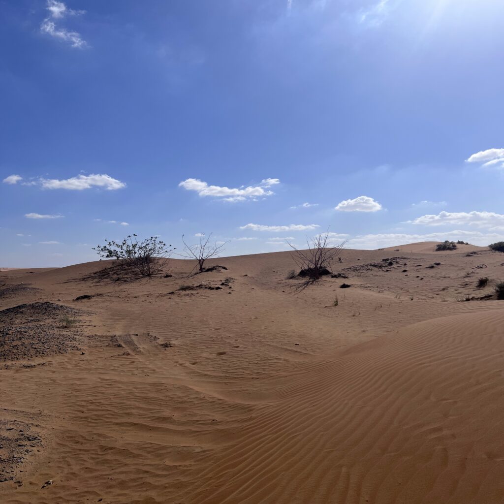 Nach dem Trubel in Dubai und dem Glanz von Abu Dhabi zog es uns in eine ganz andere Welt – in die raue, stille Weite des Landesinneren. Unsere selbstorganisierte Wüstentour mit dem Mietwagen führte uns über asphaltierte Straßen, durch felsige Gebirgszüge und sandige Ebenen – bis kurz vor die Grenze zum Oman.