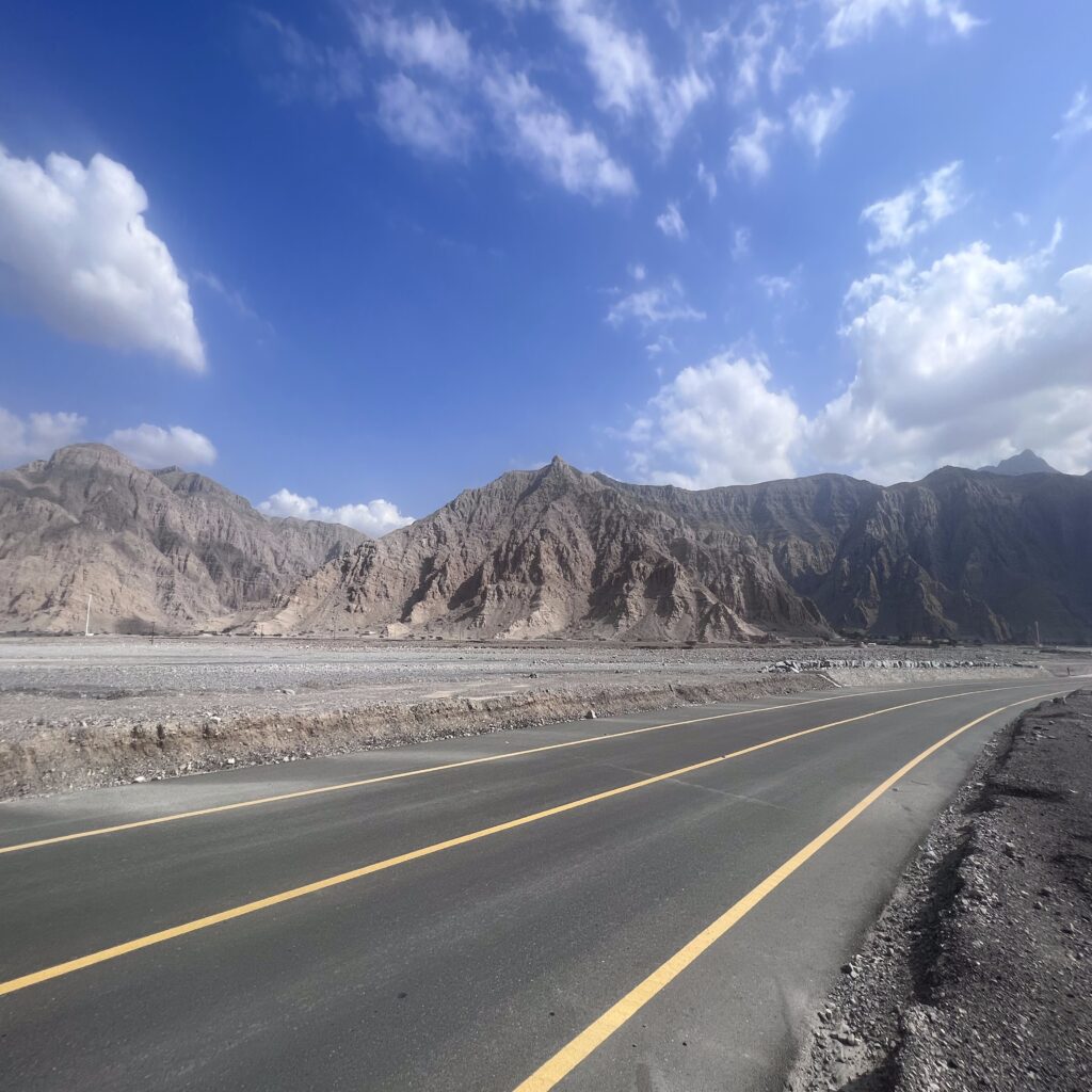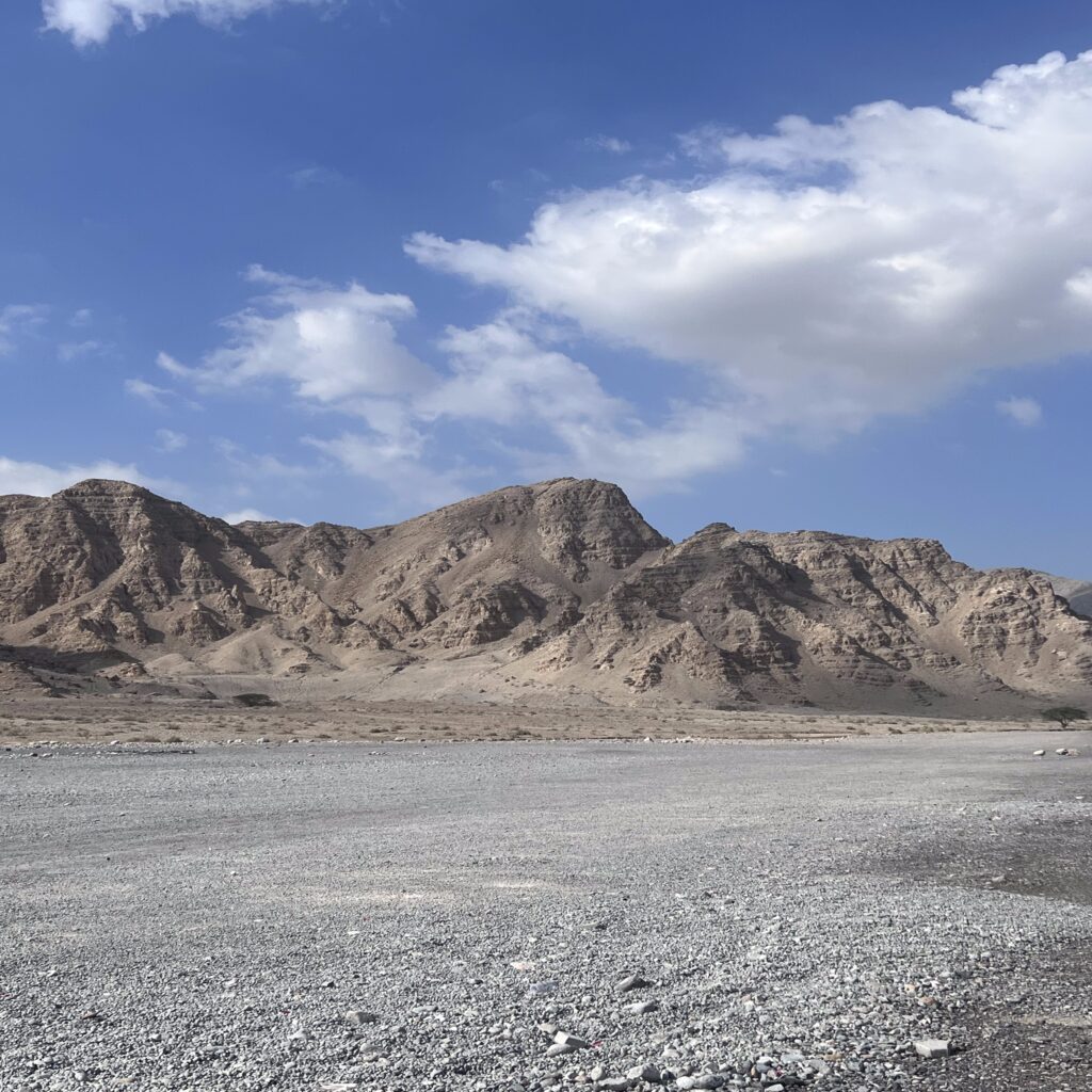 Mit jeder Kurve wurde es einsamer – kaum Verkehr, keine Ortschaften, nur Natur und wir. Die Felsen ragten in schroffen Formen in den Himmel und erinnerten mehr an eine Mondlandschaft als an das, was man gemeinhin mit der arabischen Halbinsel verbindet.