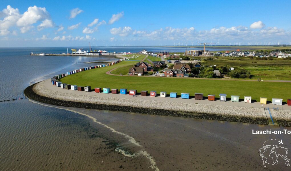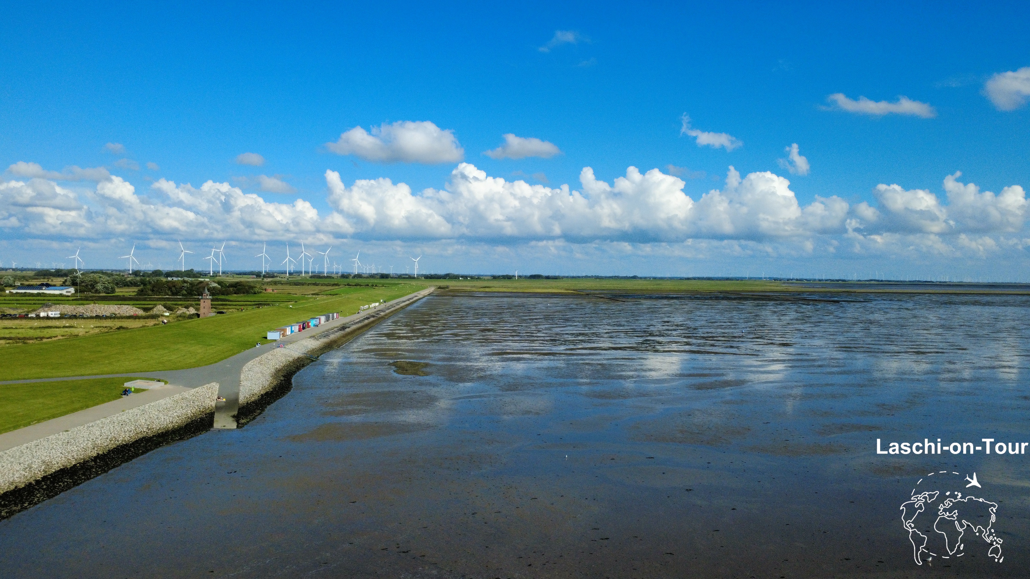 Bei Ebbe zeigt das Wattenmeer sein ganz eigenes Gesicht: Schlick, Priele, Möwen und Stille. Bei Flut hingegen reicht der Blick bis hinĂŒber zu den Halligen und nach Föhr â zumindest, wenn der Himmel aufreiĂt. Begleitet von Möwenrufen und dem Rauschen des Windes war meine Drohne im Dauereinsatz â diese Region ist einfach gemacht fĂŒr Luftaufnahmen. Besonders der Blick entlang der bunten HĂ€uschen am Deich und die WindrĂ€der in der Ferne vermitteln ein unverwechselbares Bild norddeutscher KĂŒstenlandschaft.