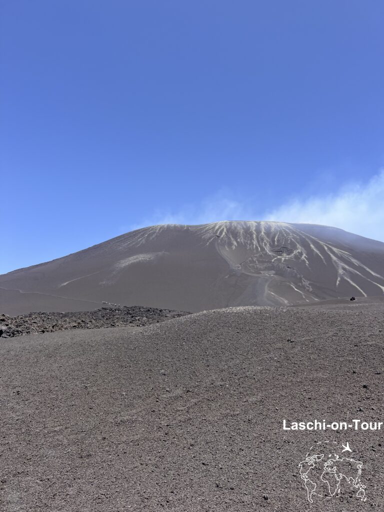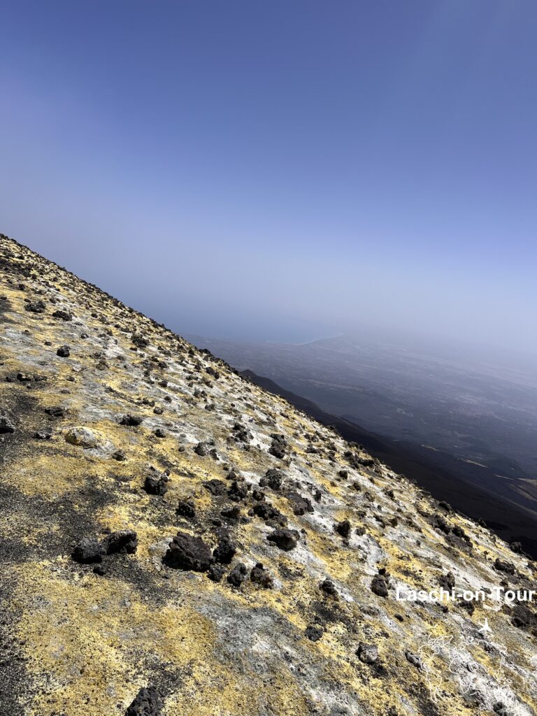 Schon früh am Morgen ging es los: Vom Rifugio Sapienza auf rund 1.900 Metern Höhe brachte mich eine Seilbahn ein gutes Stück den Hang hinauf. Von dort weiter mit einem Geländebus über staubige Lavafelder, vorbei an alten Kratern und erstarrten Lavazungen. Und dann begann der eigentliche Aufstieg – zu Fuß, auf rund zwei Stunden verteilt, bis zum Gipfel.