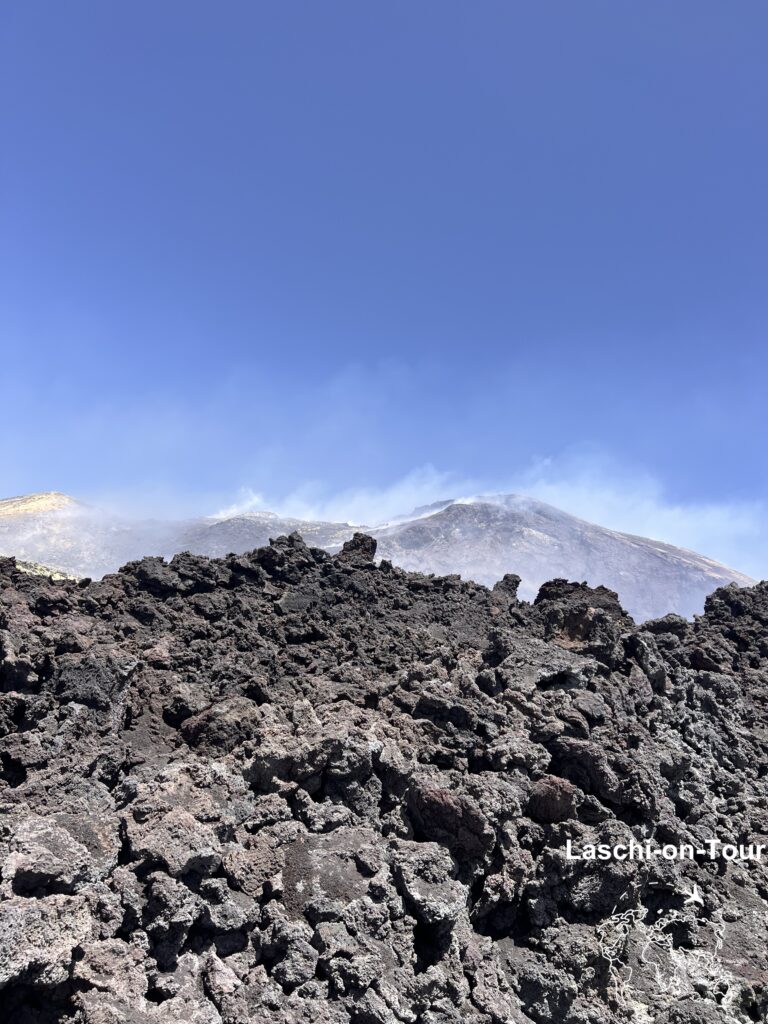 Oben angekommen: Stille. Ein weiter Blick über Sizilien bis hin zur Küste. Und vor mir: der dampfende, lebendige Krater. Gewaltig. Roh. Und in ständiger Bewegung.